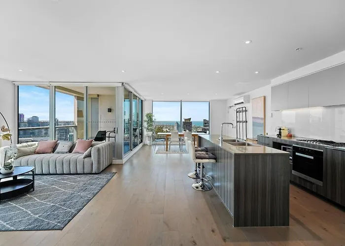 L'appartement Penthouse At City 3B2B2C-Harbour-Ocean View Ville de Ville de Melbourne spacieux est situé à moins de 350 mètres du Port de plaisance D'Albora Marinas Victoria Harbour et à 20 km de l'aéroport d'Essendon. L'un des points forts du domicile de 120 m² est la terrasse qui permet aux clients d'admirer la vue sur la mer.